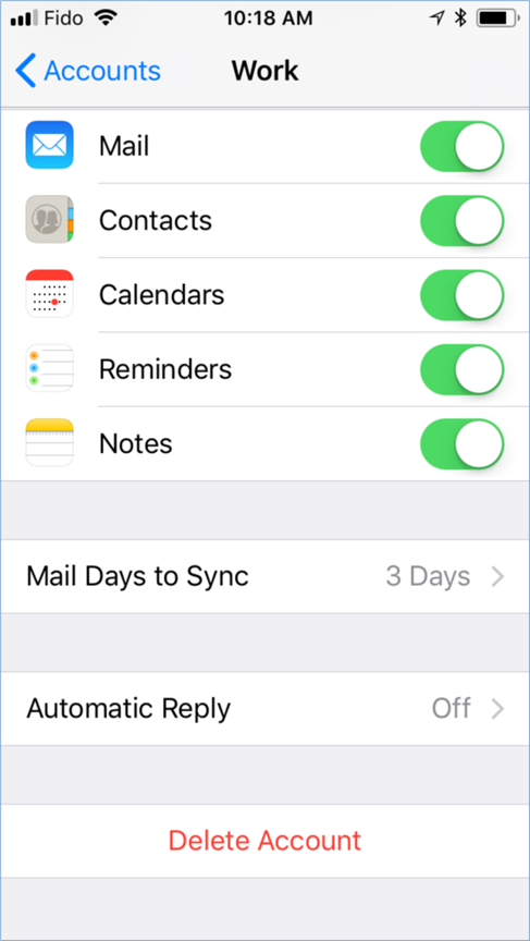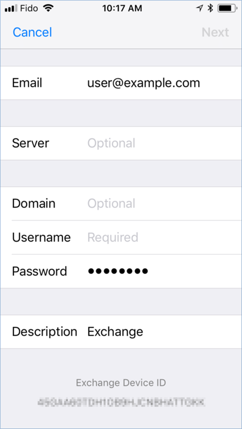 On your device, tap Settings >Apps > Mail > Mail Accounts > Add Account > Microsoft Exchange